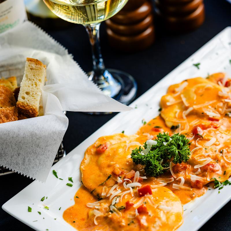 Spinach ravioli in four cheese sauce